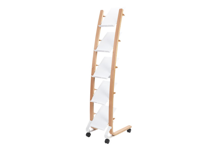 Der moderne und elegante Rollständer DD5PMW ist die ideale Lösung, um Zeitschriften oder Broschüren auf elegante Weise in Ihrer Empfangshalle auszustellen. Dank seiner praktischen 5 Fächer mit einer Tiefe von 4 cm können Sie darin eine Vielzahl von Größen und Formaten von Dokumenten präsentieren.