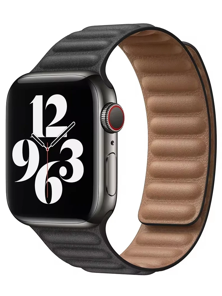 Erleben Sie das ultimative Leder-Gliederarmband für Ihre Apple Watch, das perfekte Synonym für Eleganz und Funktionalität. Entwickelt für alle Modelle, einschließlich Serie 9, 8, 7, 6, 5, 4, 3 und SE sowie Ultra, bietet dieses Armband eine Kombination aus luxuriösem Leder und einem praktischen Magnetverschluss.