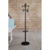 Diese Garderobe besteht aus einem Kopf mit 8 schwarzen Kunststoffhaken und 2 abnehmbaren Haken, einem Schirmständer und einem beschwerten Sockel mit Wasserbehälter.