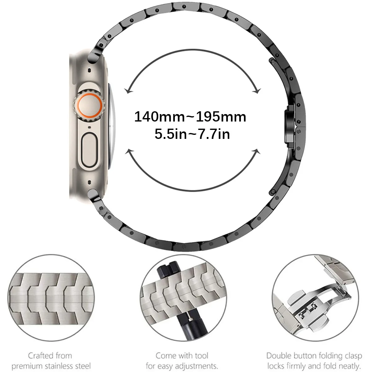 Vielseitige Größen: Erhältlich in den Größen 49mm, 45mm, 44mm und 42mm, passend für verschiedene Modelle der Apple Watch Serie.